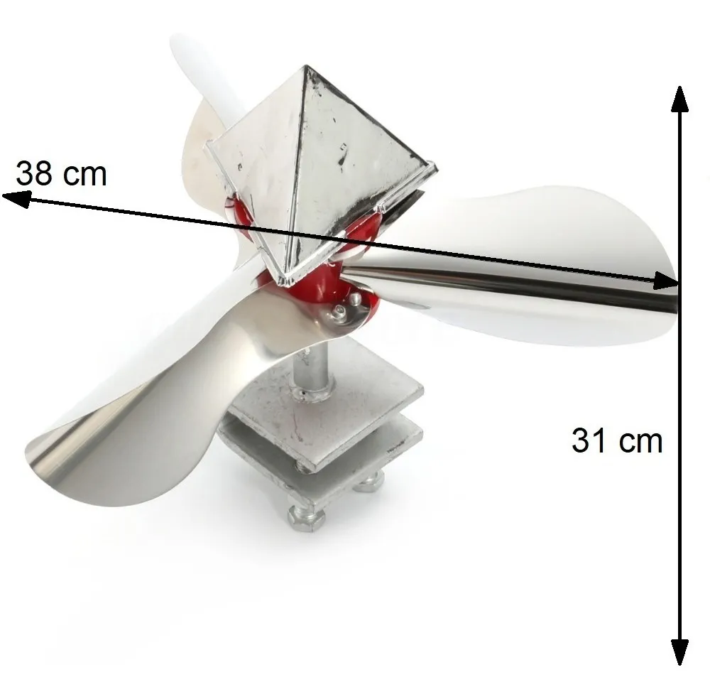 - Posee 3 aspas que reflejan la luz y miden 9,5 cm.
