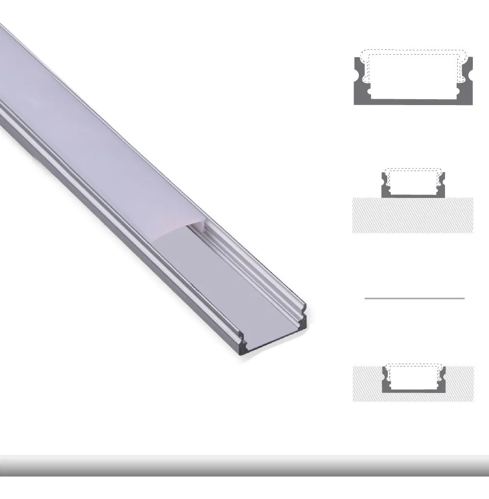 Este perfil puede ser empotrado y o bien ser aplicado a la superficie. Nuestros perfiles están especialmente diseñados para proteger sus tiras LED contra agentes externos, golpes, humedad y polvo, y vienen provistos con un difusor glaseado que proporciona un efecto de iluminación uniforme.