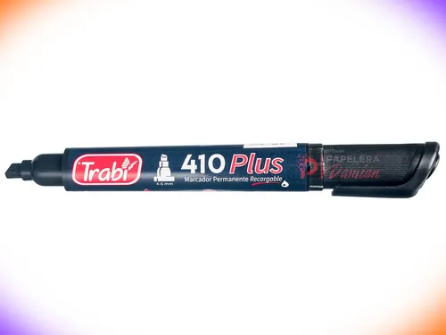 Este marcador permanente de la marca Trabi, modelo 410, es un elemento esencial para cualquier oficina o entorno de trabajo. Con su punta biselada, permite una escritura clara y precisa, ideal para resaltar información importante o para crear etiquetas duraderas.