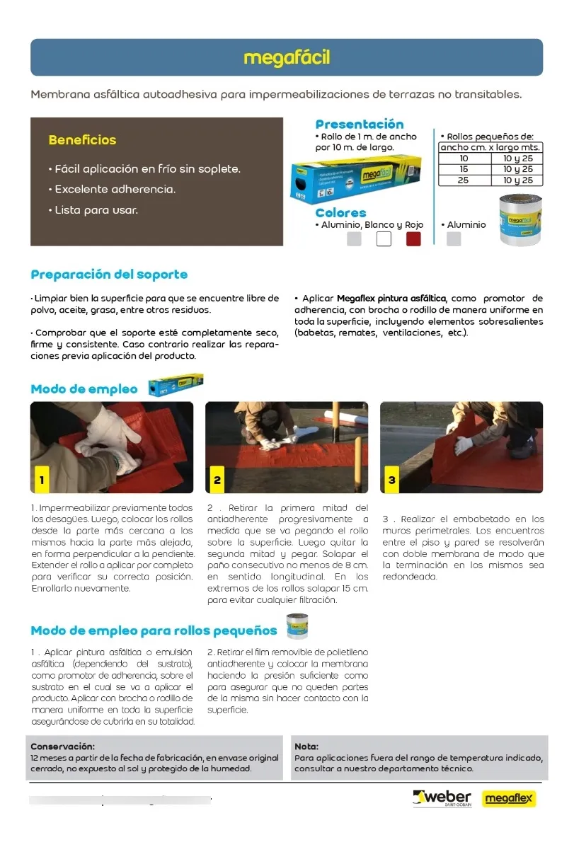 Fácil aplicación en frío, sin soplete